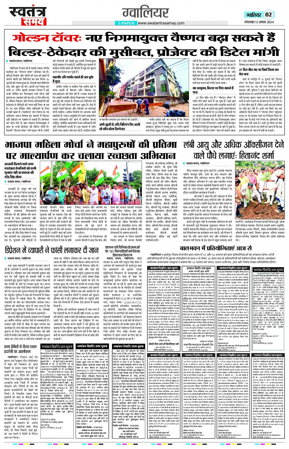 Gwalior Edition 13th Aug Page: 2 August 13, 2024 << First << 2 >> Last >> Page 1Page 2Page 3Page 4Page 5Page 6Page 7Page 8 × Gwalior Edition 13th Aug Page 1Page 2Page 3Page 4Page 5Page 6Page 7Page 8 << First << 2 >> Last >> Page 1Page 2Page 3Page 4Page 5Page 6Page 7Page 8