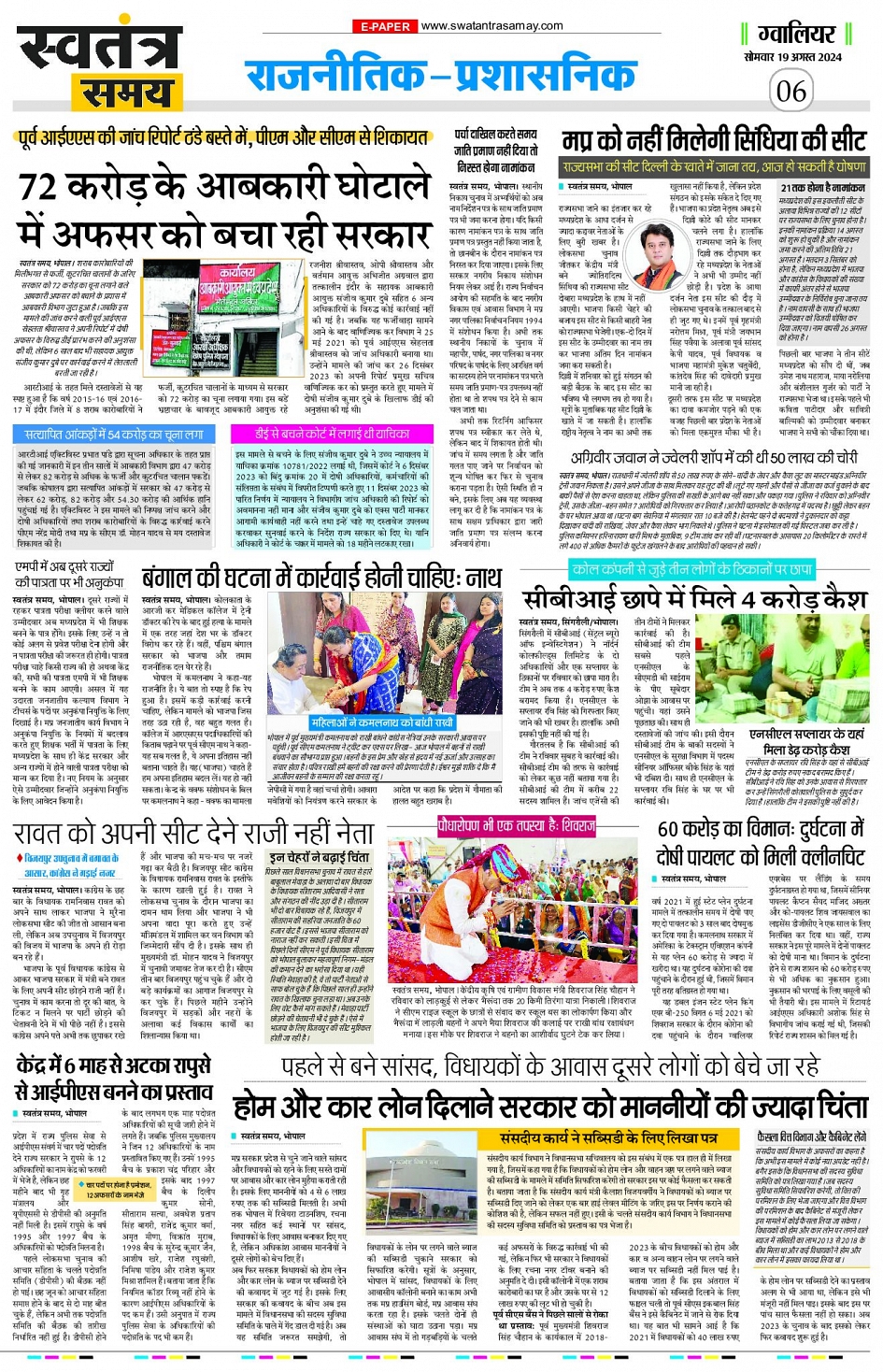 Gwalior Edition 19th Aug Page: 6 August 19, 2024 << First << 6 >> Last >> Page 1Page 2Page 3Page 4Page 5Page 6Page 7Page 8 × Gwalior Edition 19th Aug Page 1Page 2Page 3Page 4Page 5Page 6Page 7Page 8 << First << 6 >> Last >> Page 1Page 2Page 3Page 4Page 5Page 6Page 7Page 8