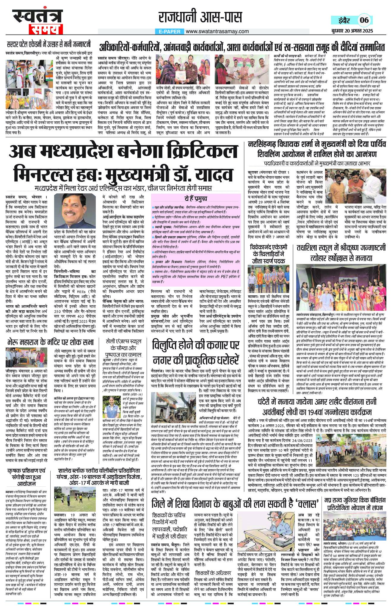 Indore Edition 20 August Page: 6 August 20, 2025 << First << 6 >> Last >> Page 1Page 2Page 3Page 4Page 5Page 6Page 7Page 8 × Indore Edition 20 August Page 1Page 2Page 3Page 4Page 5Page 6Page 7Page 8 << First << 6 >> Last >> Page 1Page 2Page 3Page 4Page 5Page 6Page 7Page 8