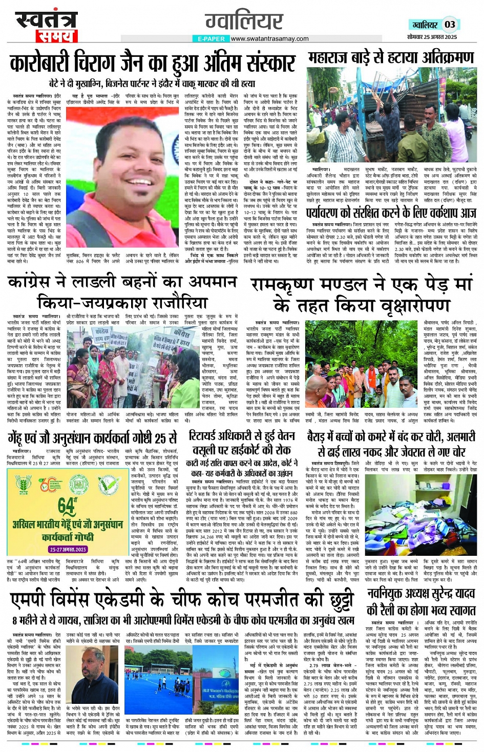 Gwalior Edition -25 August 2025 Page: 3 August 25, 2025 << First << 3 >> Last >> Page 1Page 2Page 3Page 4Page 5Page 6Page 7Page 8 × Gwalior Edition -25 August 2025 Page 1Page 2Page 3Page 4Page 5Page 6Page 7Page 8 << First << 3 >> Last >> Page 1Page 2Page 3Page 4Page 5Page 6Page 7Page 8