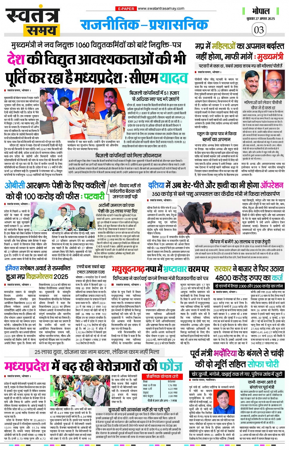 Bhopal Edition -27 August 2025 Page: 3 August 27, 2025 << First << 3 >> Last >> Page 1Page 2Page 3Page 4Page 5Page 6Page 7Page 8 × Bhopal Edition -27 August 2025 Page 1Page 2Page 3Page 4Page 5Page 6Page 7Page 8 << First << 3 >> Last >> Page 1Page 2Page 3Page 4Page 5Page 6Page 7Page 8