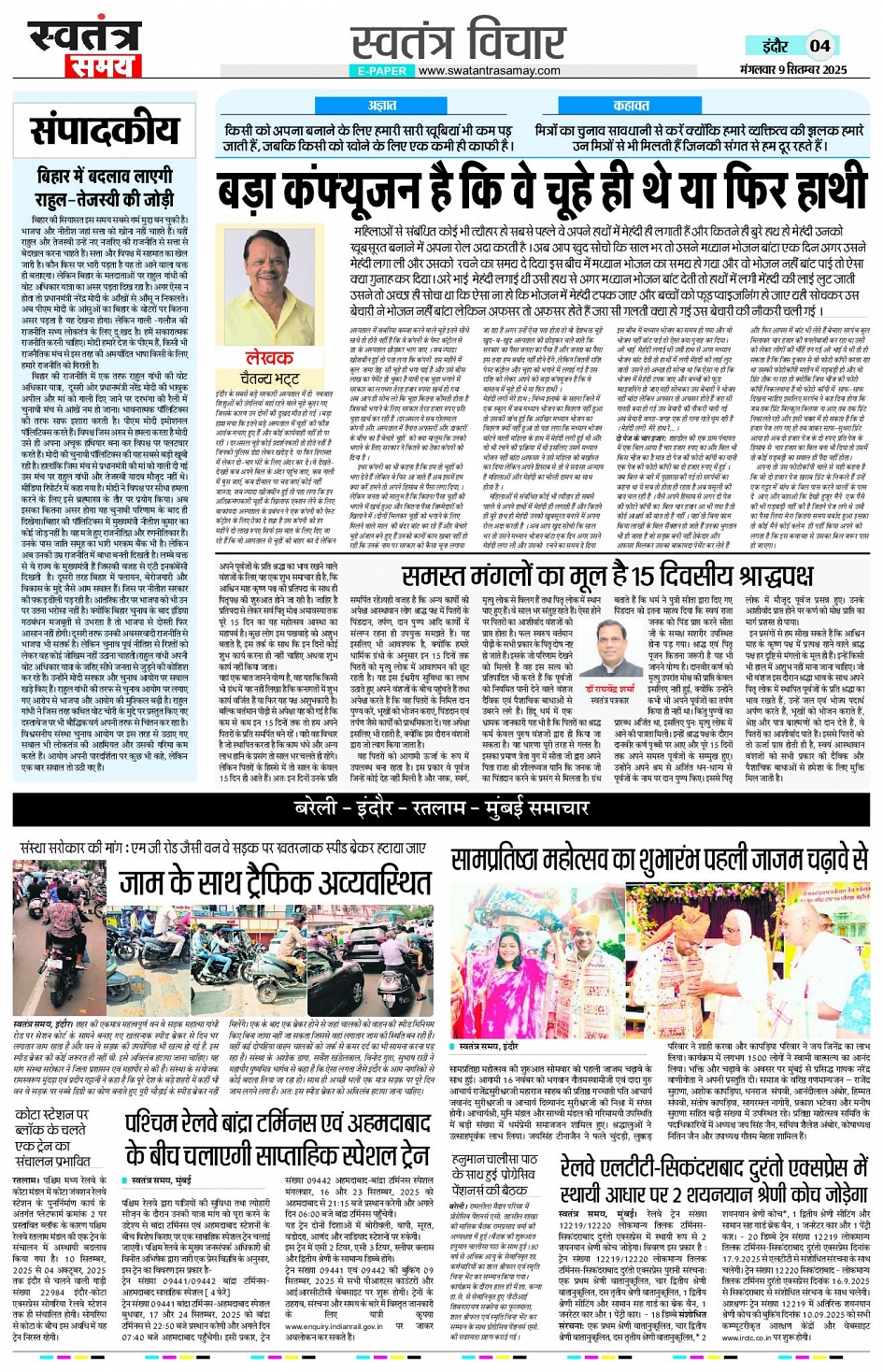 Indore Edition 09 Sept Page: 4 September 09, 2025 << First << 4 >> Last >> Page 1Page 2Page 3Page 4Page 5Page 6Page 7Page 8 × Indore Edition 09 Sept Page 1Page 2Page 3Page 4Page 5Page 6Page 7Page 8 << First << 4 >> Last >> Page 1Page 2Page 3Page 4Page 5Page 6Page 7Page 8