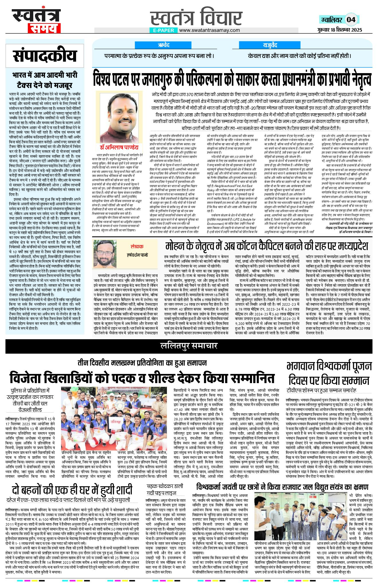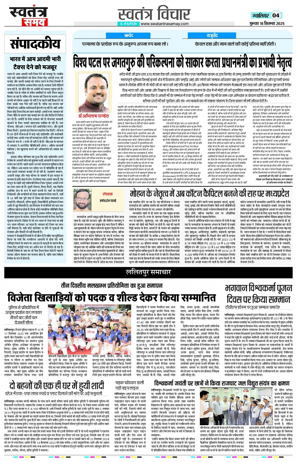 Gwalior Edition 18 Sept Page: 4 September 18, 2025 << First << 4 >> Last >> Page 1Page 2Page 3Page 4Page 5Page 6Page 7Page 8 × Gwalior Edition 18 Sept Page 1Page 2Page 3Page 4Page 5Page 6Page 7Page 8 << First << 4 >> Last >> Page 1Page 2Page 3Page 4Page 5Page 6Page 7Page 8
