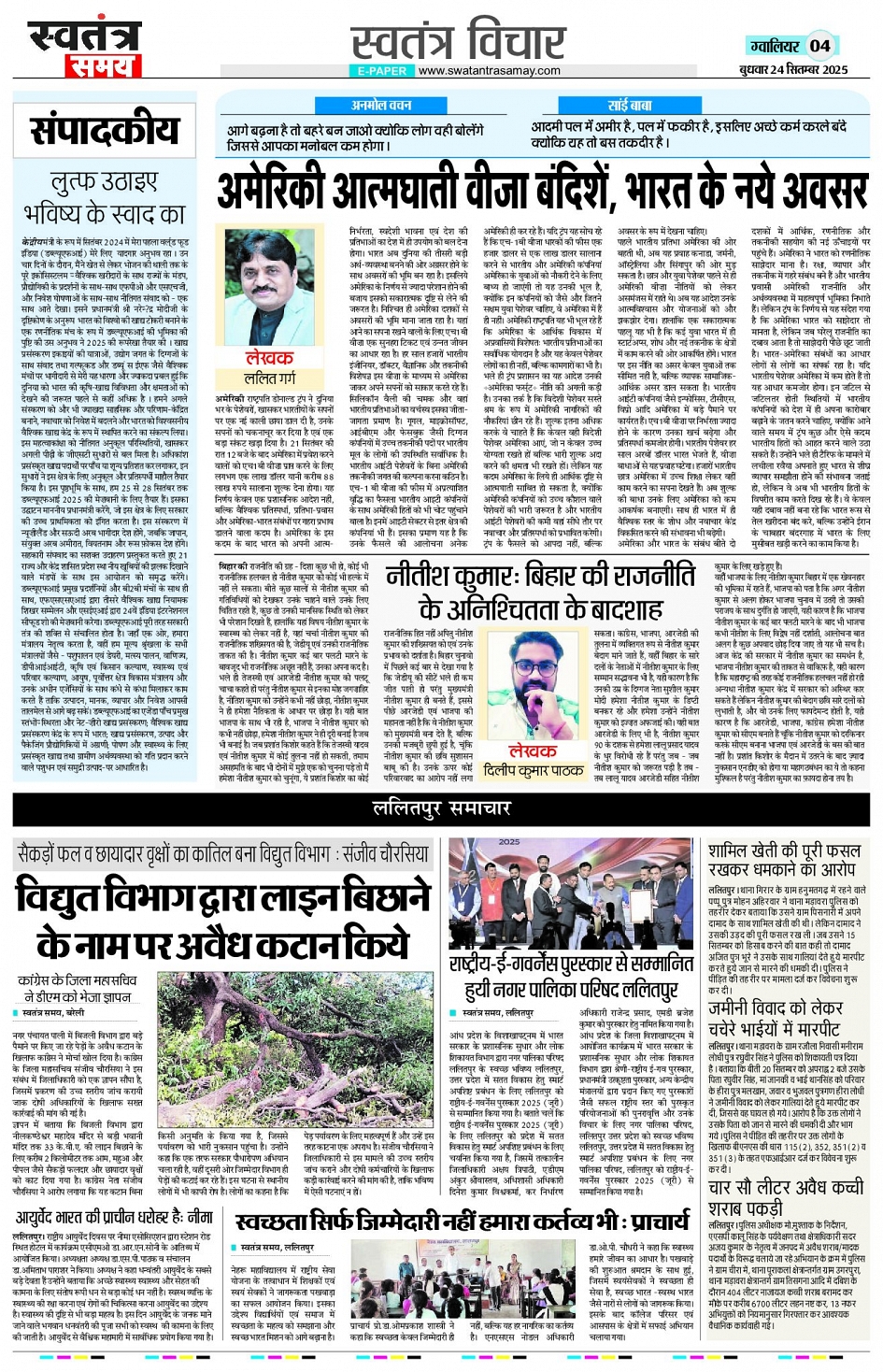 Gwalior Edition 24 Sept Page: 4 September 24, 2025 << First << 4 >> Last >> Page 1Page 2Page 3Page 4Page 5Page 6Page 7Page 8 × Gwalior Edition 24 Sept Page 1Page 2Page 3Page 4Page 5Page 6Page 7Page 8 << First << 4 >> Last >> Page 1Page 2Page 3Page 4Page 5Page 6Page 7Page 8