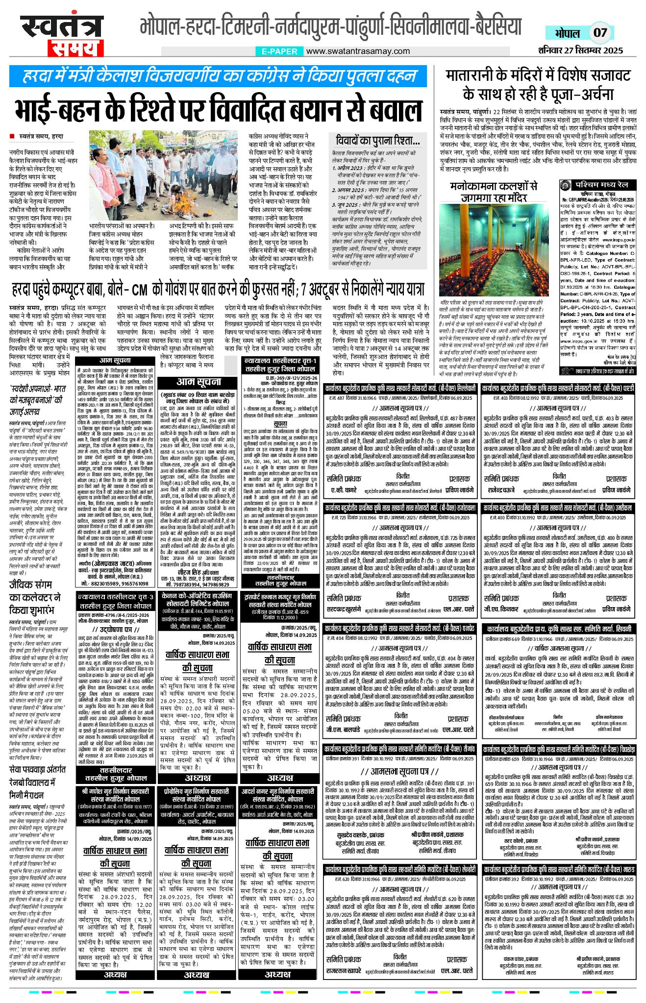 Bhopal Edition 27 Sept Page: 7 September 27, 2025 << First << 7 >> Last >> Page 1Page 2Page 3Page 4Page 5Page 6Page 7Page 8 × Bhopal Edition 27 Sept Page 1Page 2Page 3Page 4Page 5Page 6Page 7Page 8 << First << 7 >> Last >> Page 1Page 2Page 3Page 4Page 5Page 6Page 7Page 8
