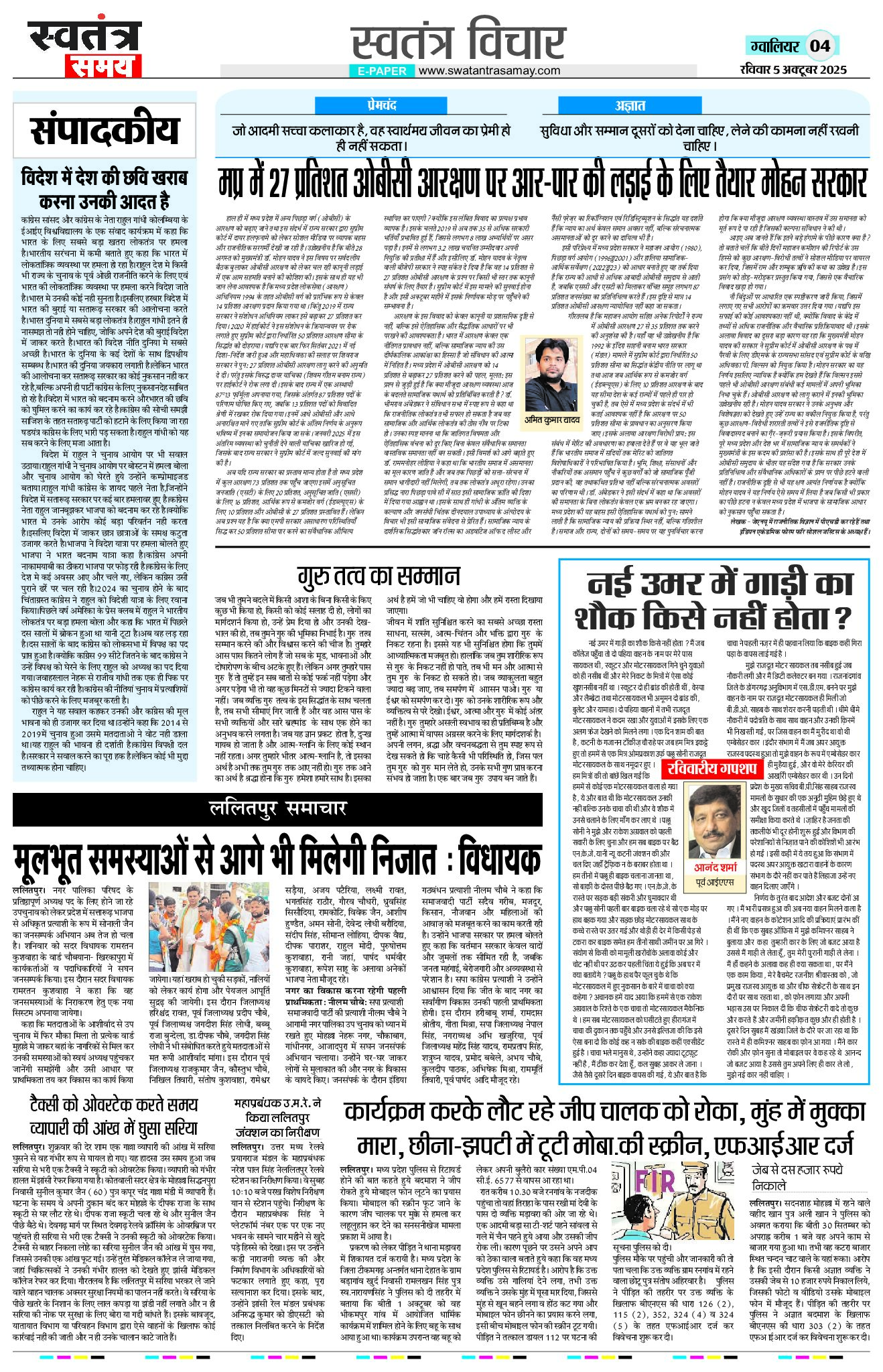 Gwalior Edition 05 Oct Page: 4 October 05, 2025 << First << 4 >> Last >> Page 1Page 2Page 3Page 4Page 5Page 6Page 7Page 8 × Gwalior Edition 05 Oct Page 1Page 2Page 3Page 4Page 5Page 6Page 7Page 8 << First << 4 >> Last >> Page 1Page 2Page 3Page 4Page 5Page 6Page 7Page 8