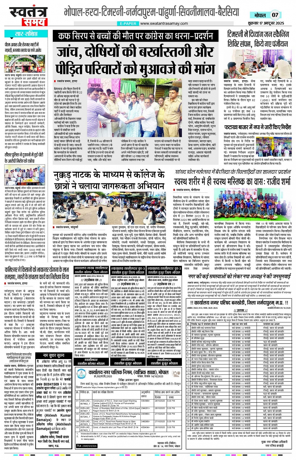 Bhopal Edition 17 Oct Page: 7 October 17, 2025 << First << 7 >> Last >> Page 1Page 2Page 3Page 4Page 5Page 6Page 7Page 8 × Bhopal Edition 17 Oct Page 1Page 2Page 3Page 4Page 5Page 6Page 7Page 8 << First << 7 >> Last >> Page 1Page 2Page 3Page 4Page 5Page 6Page 7Page 8