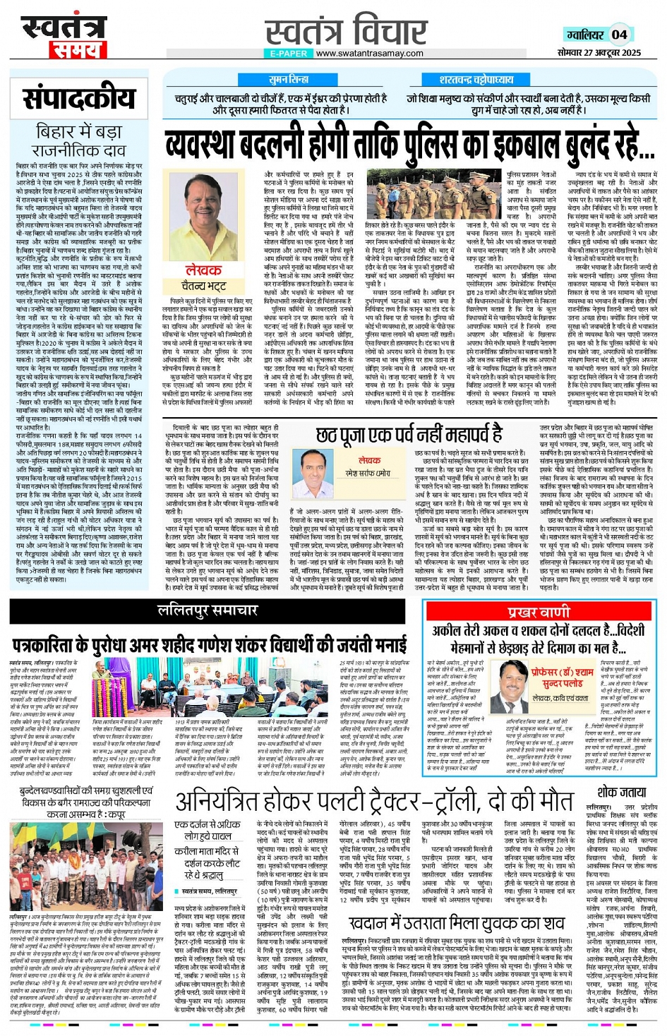 Gwalior Edition 27 Oct Page: 4 October 27, 2025 << First << 4 >> Last >> Page 1Page 2Page 3Page 4Page 5Page 6Page 7Page 8 × Gwalior Edition 27 Oct Page 1Page 2Page 3Page 4Page 5Page 6Page 7Page 8 << First << 4 >> Last >> Page 1Page 2Page 3Page 4Page 5Page 6Page 7Page 8
