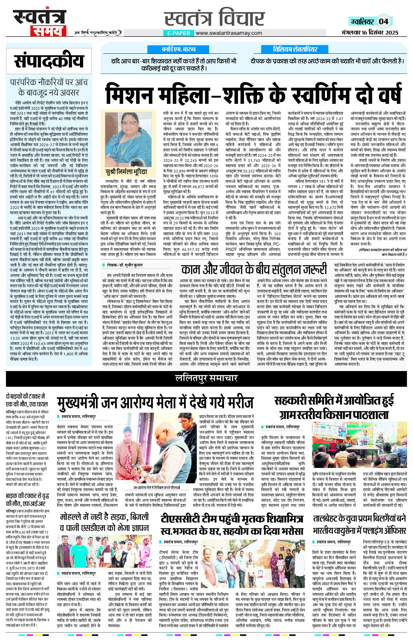 Gwalior Edition 16 Dec Page: 4 December 16, 2025 << First << 4 >> Last >> Page 1Page 2Page 3Page 4Page 5Page 6Page 7Page 8 × Gwalior Edition 16 Dec Page 1Page 2Page 3Page 4Page 5Page 6Page 7Page 8 << First << 4 >> Last >> Page 1Page 2Page 3Page 4Page 5Page 6Page 7Page 8