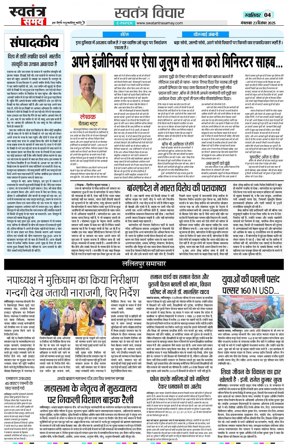 Gwalior Edition 23 Dec Page: 4 December 23, 2025 << First << 4 >> Last >> Page 1Page 2Page 3Page 4Page 5Page 6Page 7Page 8 × Gwalior Edition 23 Dec Page 1Page 2Page 3Page 4Page 5Page 6Page 7Page 8 << First << 4 >> Last >> Page 1Page 2Page 3Page 4Page 5Page 6Page 7Page 8