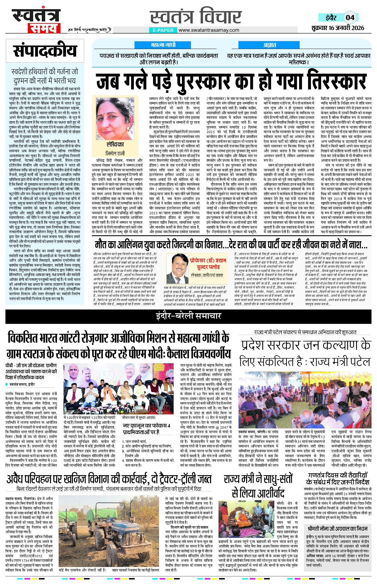 Indore Edition 16 Jan Page: 4 January 16, 2026 << First << 4 >> Last >> Page 1Page 2Page 3Page 4Page 5Page 6Page 7Page 8 × Indore Edition 16 Jan Page 1Page 2Page 3Page 4Page 5Page 6Page 7Page 8 << First << 4 >> Last >> Page 1Page 2Page 3Page 4Page 5Page 6Page 7Page 8