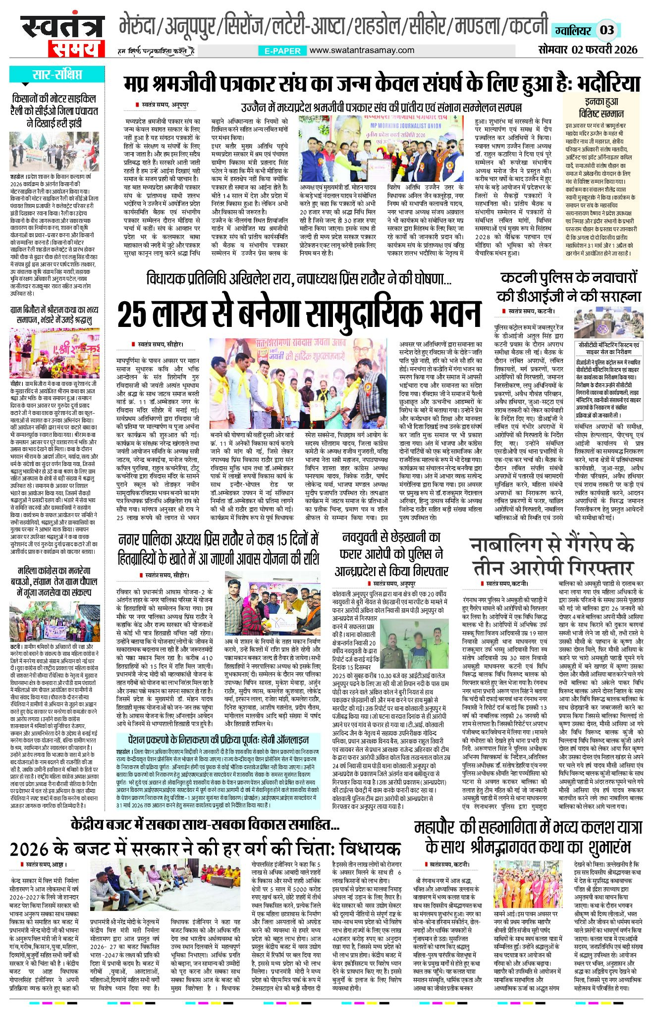 Gwalior Edition 02 FEB Page: 3 February 02, 2026 << First << 3 >> Last >> Page 1Page 2Page 3Page 4Page 5Page 6Page 7Page 8 × Gwalior Edition 02 FEB Page 1Page 2Page 3Page 4Page 5Page 6Page 7Page 8 << First << 3 >> Last >> Page 1Page 2Page 3Page 4Page 5Page 6Page 7Page 8