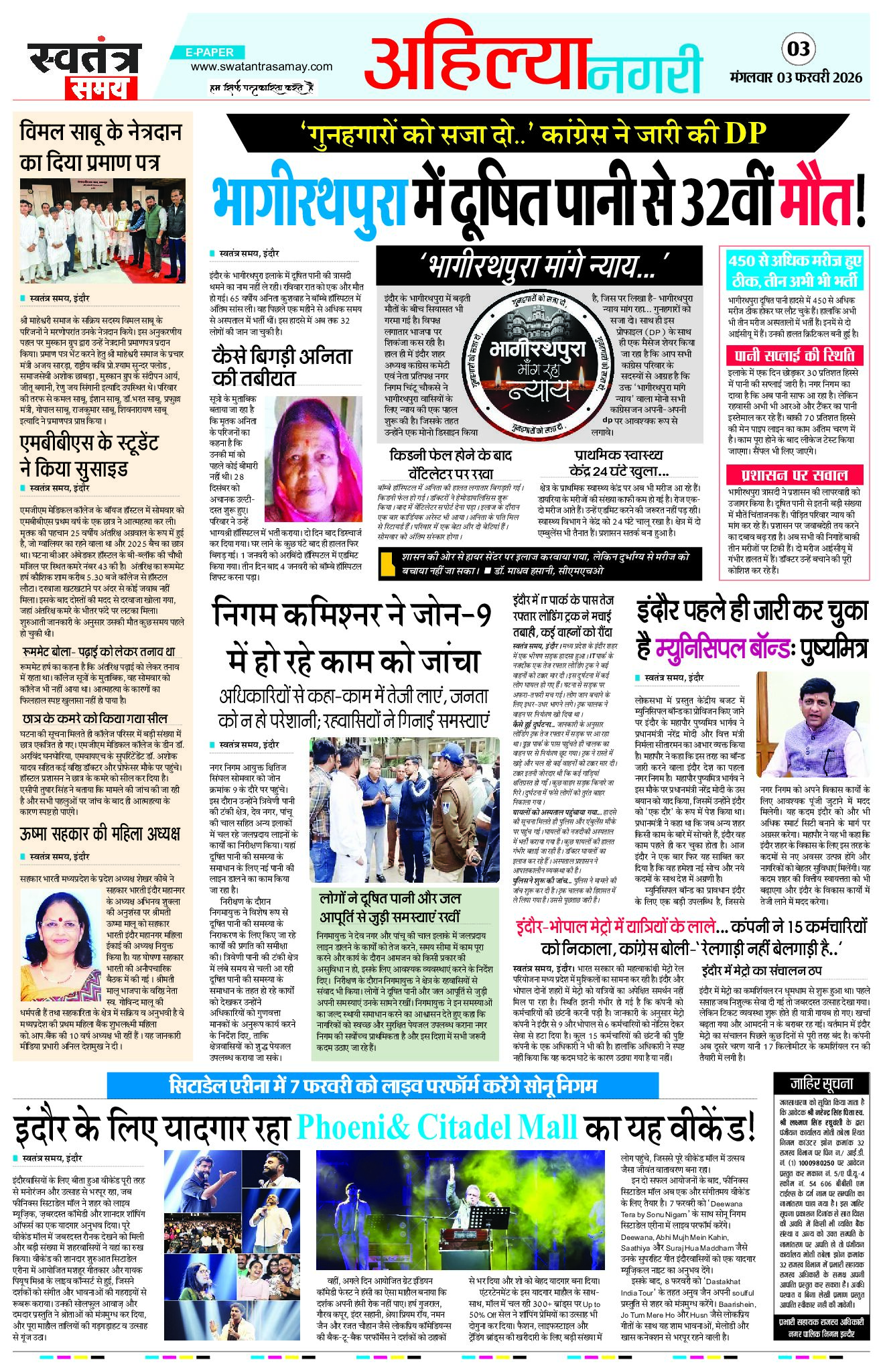 Indore Edition 03 Feb Page: 3 February 03, 2026 << First << 3 >> Last >> Page 1Page 2Page 3Page 4Page 5Page 6Page 7Page 8 × Indore Edition 03 Feb Page 1Page 2Page 3Page 4Page 5Page 6Page 7Page 8 << First << 3 >> Last >> Page 1Page 2Page 3Page 4Page 5Page 6Page 7Page 8