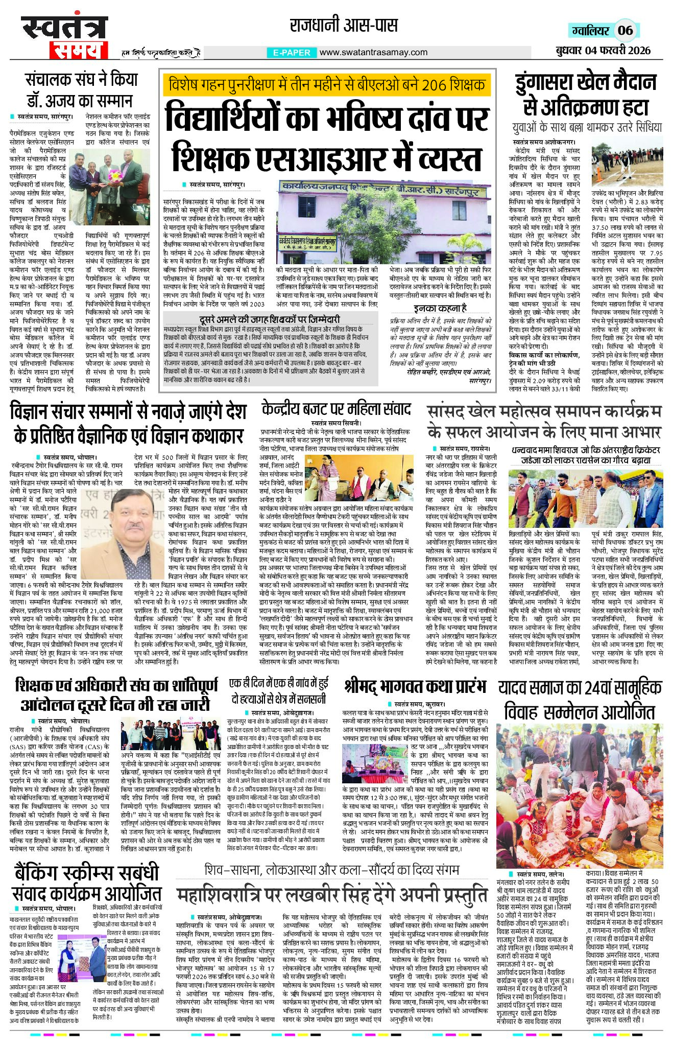 Gwalior Edition 04 Feb Page: 6 February 04, 2026 << First << 6 >> Last >> Page 1Page 2Page 3Page 4Page 5Page 6Page 7Page 8 × Gwalior Edition 04 Feb Page 1Page 2Page 3Page 4Page 5Page 6Page 7Page 8 << First << 6 >> Last >> Page 1Page 2Page 3Page 4Page 5Page 6Page 7Page 8