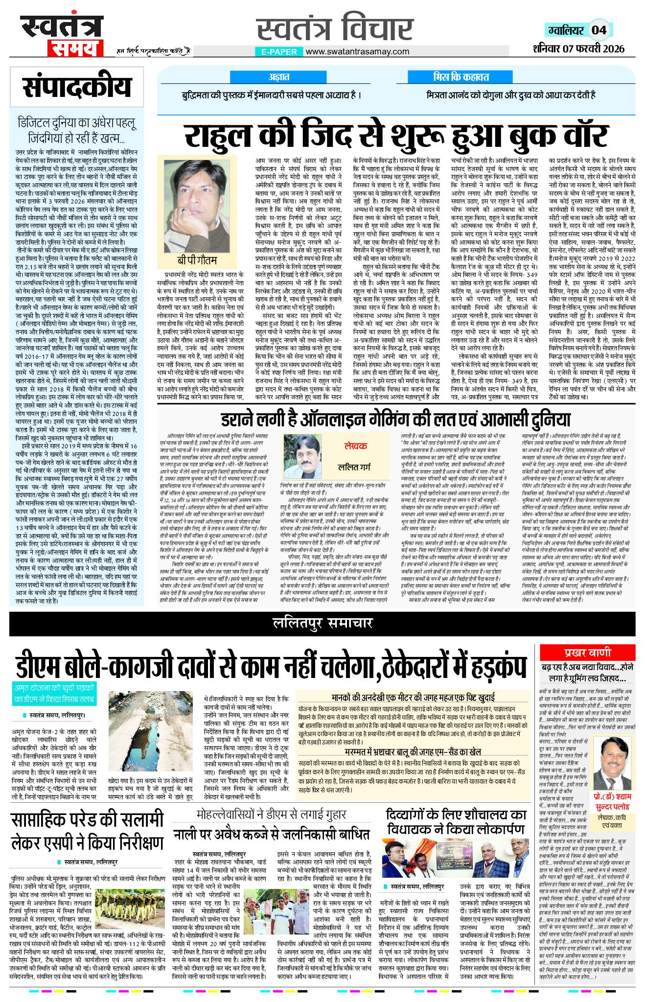 Gwalior Edition 07 Feb Page: 4 February 07, 2026 << First << 4 >> Last >> Page 1Page 2Page 3Page 4Page 5Page 6Page 7Page 8 × Gwalior Edition 07 Feb Page 1Page 2Page 3Page 4Page 5Page 6Page 7Page 8 << First << 4 >> Last >> Page 1Page 2Page 3Page 4Page 5Page 6Page 7Page 8