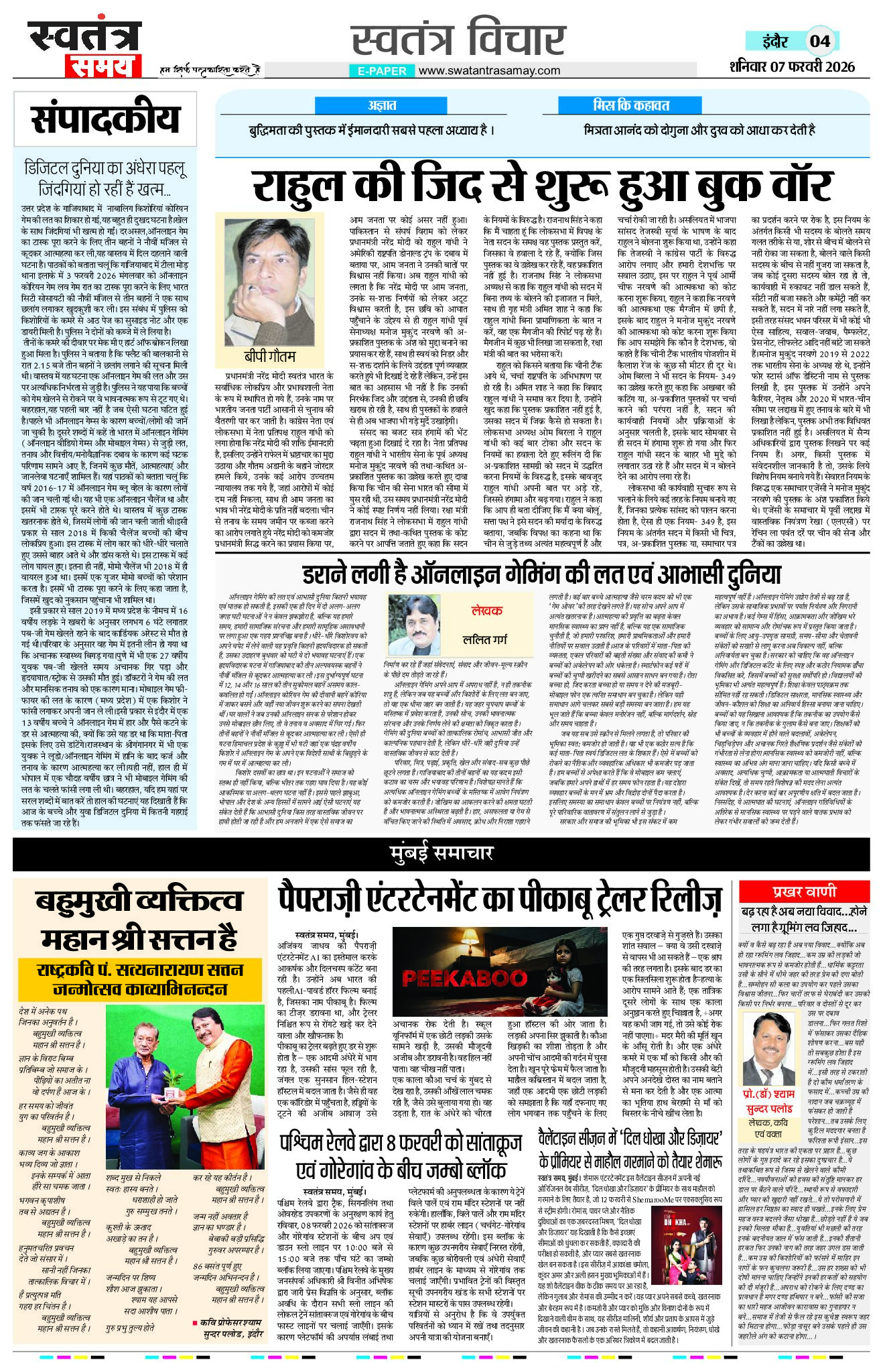 Indore Edition 07 Feb Page: 4 February 07, 2026 << First << 4 >> Last >> Page 1Page 2Page 3Page 4Page 5Page 6Page 7Page 8 × Indore Edition 07 Feb Page 1Page 2Page 3Page 4Page 5Page 6Page 7Page 8 << First << 4 >> Last >> Page 1Page 2Page 3Page 4Page 5Page 6Page 7Page 8