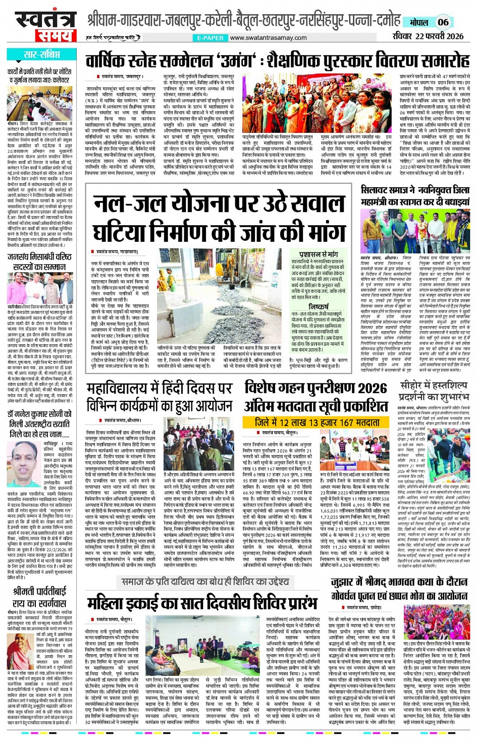 Bhopal Edition 22 Feb Page: 6 February 22, 2026 << First << 6 >> Last >> Page 1Page 2Page 3Page 4Page 5Page 6Page 7Page 8 × Bhopal Edition 22 Feb Page 1Page 2Page 3Page 4Page 5Page 6Page 7Page 8 << First << 6 >> Last >> Page 1Page 2Page 3Page 4Page 5Page 6Page 7Page 8