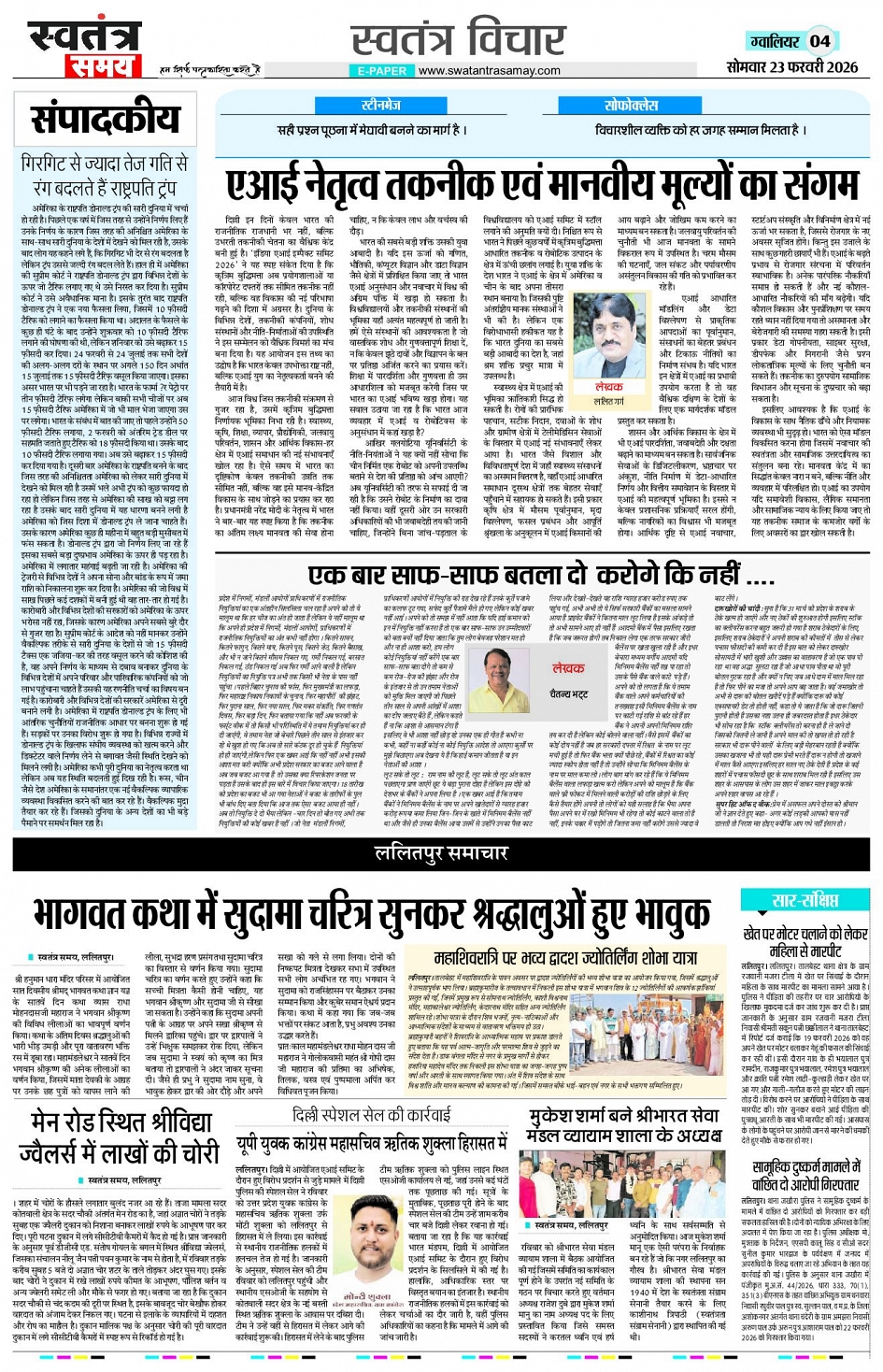 Gwalior Edition 23 Feb Page: 4 February 23, 2026 << First << 4 >> Last >> Page 1Page 2Page 3Page 4Page 5Page 6Page 7Page 8 × Gwalior Edition 23 Feb Page 1Page 2Page 3Page 4Page 5Page 6Page 7Page 8 << First << 4 >> Last >> Page 1Page 2Page 3Page 4Page 5Page 6Page 7Page 8
