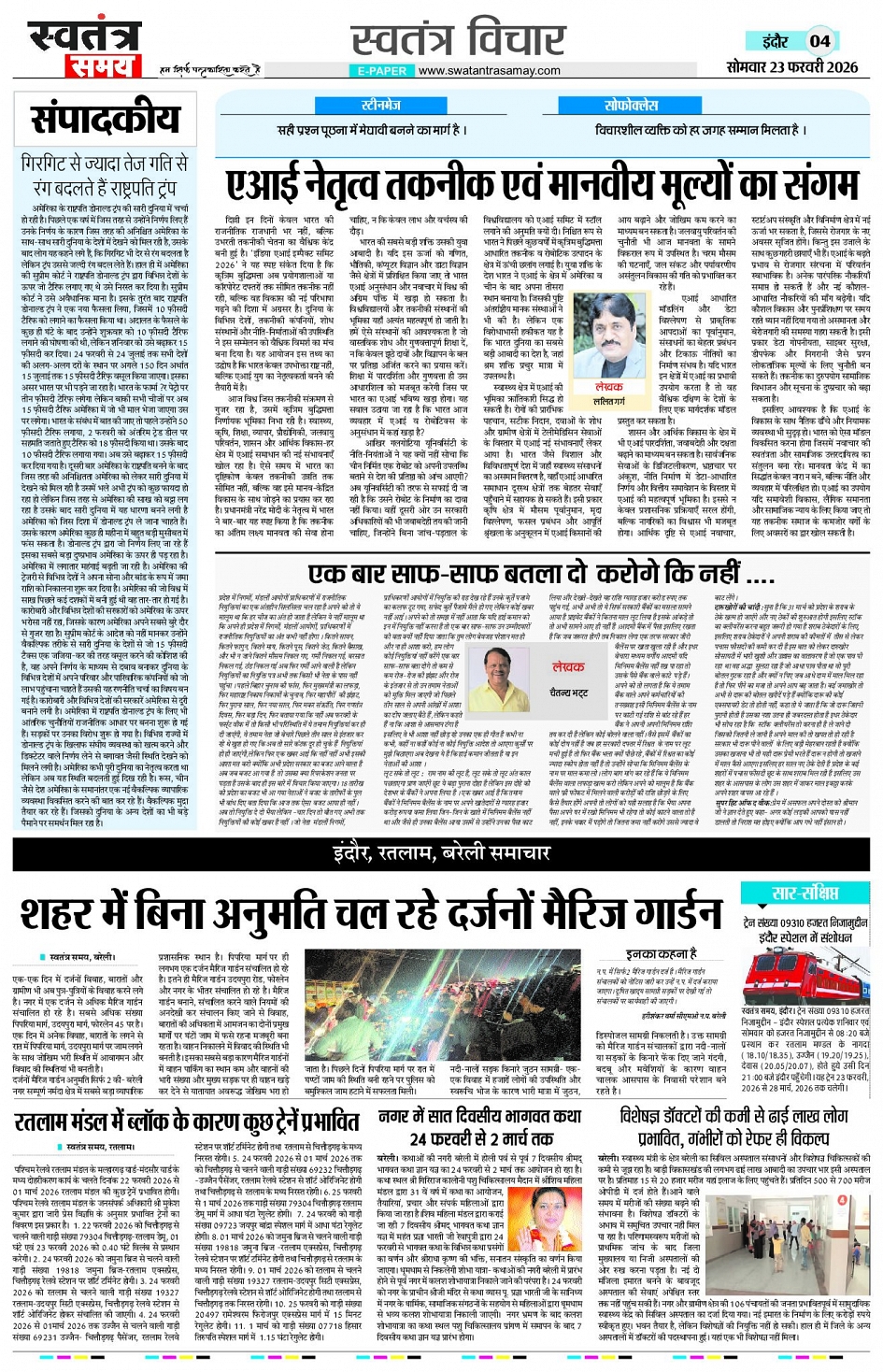 Indore Edition 23 Feb Page: 4 February 23, 2026 << First << 4 >> Last >> Page 1Page 2Page 3Page 4Page 5Page 6Page 7Page 8 × Indore Edition 23 Feb Page 1Page 2Page 3Page 4Page 5Page 6Page 7Page 8 << First << 4 >> Last >> Page 1Page 2Page 3Page 4Page 5Page 6Page 7Page 8