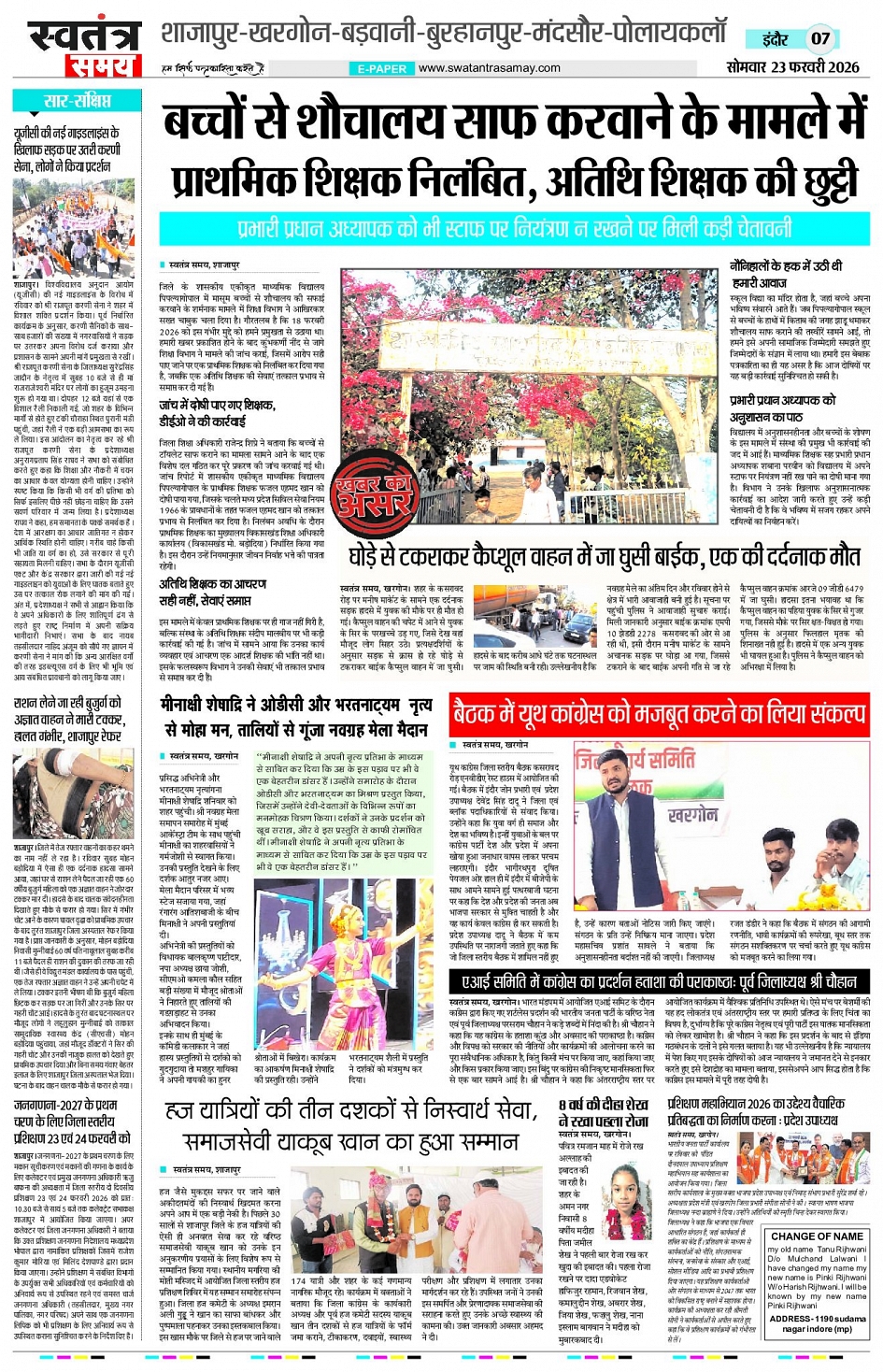 Indore Edition 23 Feb Page: 7 February 23, 2026 << First << 7 >> Last >> Page 1Page 2Page 3Page 4Page 5Page 6Page 7Page 8 × Indore Edition 23 Feb Page 1Page 2Page 3Page 4Page 5Page 6Page 7Page 8 << First << 7 >> Last >> Page 1Page 2Page 3Page 4Page 5Page 6Page 7Page 8