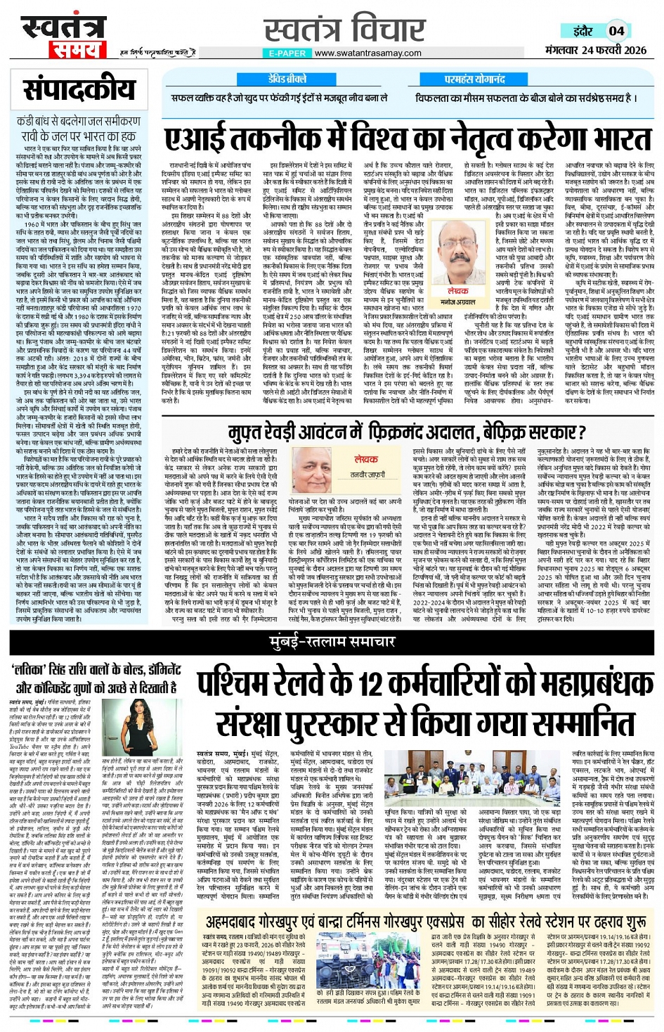 Indore Edition 24 Feb Page: 4 February 24, 2026 << First << 4 >> Last >> Page 1Page 2Page 3Page 4Page 5Page 6Page 7Page 8 × Indore Edition 24 Feb Page 1Page 2Page 3Page 4Page 5Page 6Page 7Page 8 << First << 4 >> Last >> Page 1Page 2Page 3Page 4Page 5Page 6Page 7Page 8