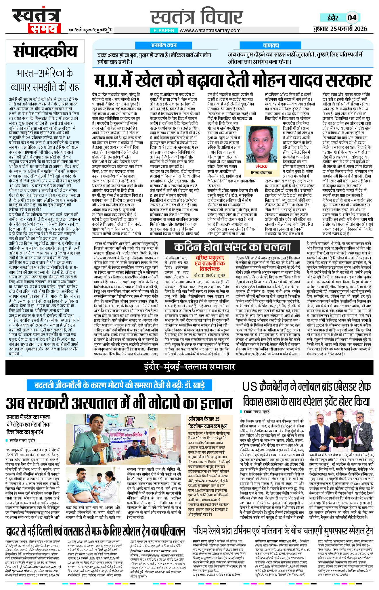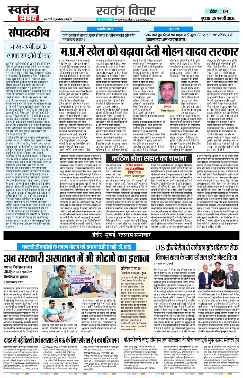 Indore Edition 25 Feb Page: 4 February 25, 2026 << First << 4 >> Last >> Page 1Page 2Page 3Page 4Page 5Page 6Page 7Page 8 × Indore Edition 25 Feb Page 1Page 2Page 3Page 4Page 5Page 6Page 7Page 8 << First << 4 >> Last >> Page 1Page 2Page 3Page 4Page 5Page 6Page 7Page 8