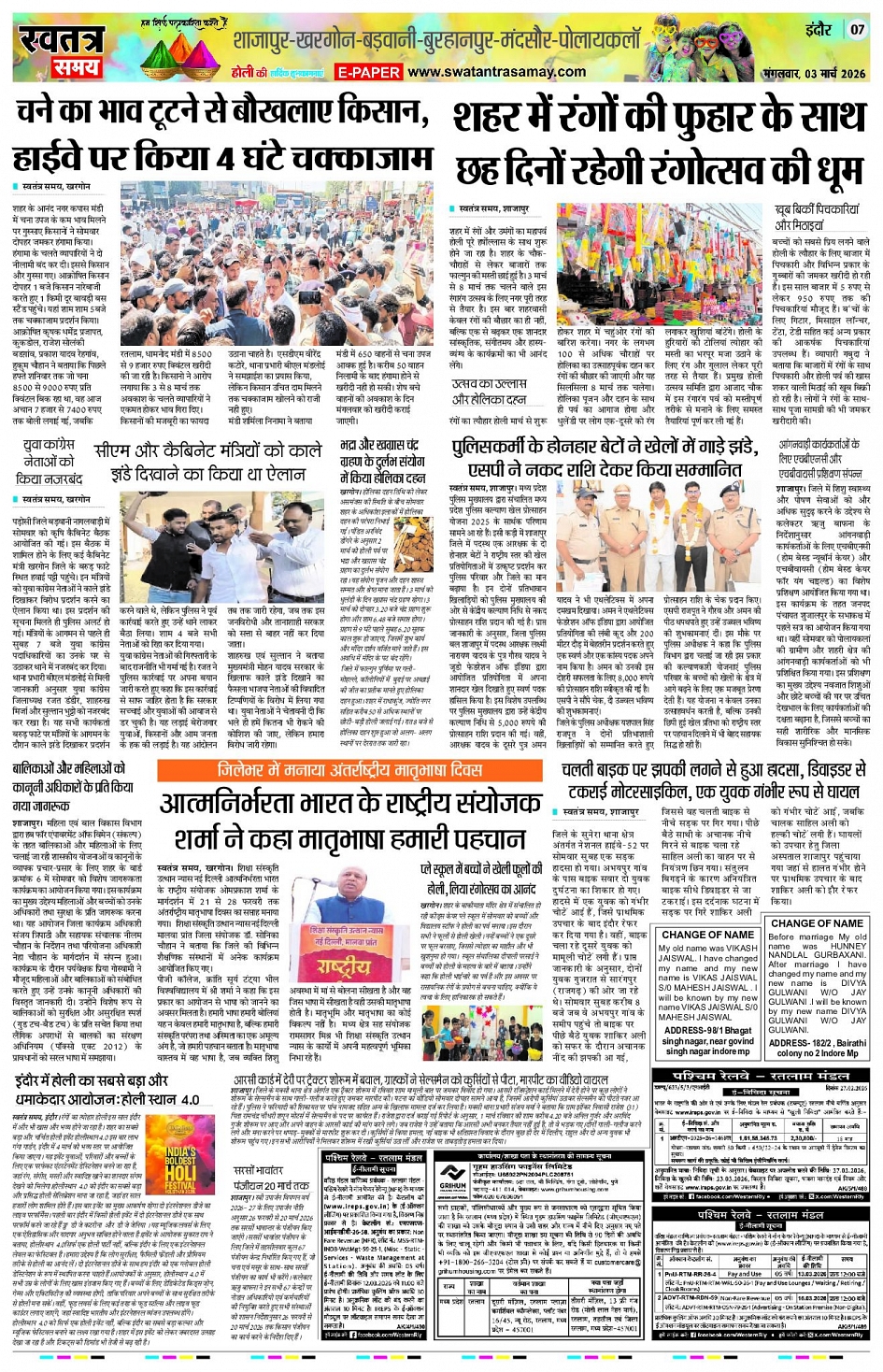 Indore Edition 03 MAR Page: 7 March 03, 2026 << First << 7 >> Last >> Page 1Page 2Page 3Page 4Page 5Page 6Page 7Page 8 × Indore Edition 03 MAR Page 1Page 2Page 3Page 4Page 5Page 6Page 7Page 8 << First << 7 >> Last >> Page 1Page 2Page 3Page 4Page 5Page 6Page 7Page 8