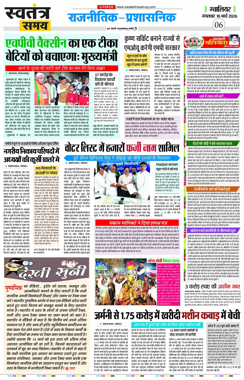 Gwalior Edition 10 March Page: 6 March 10, 2026 << First << 6 >> Last >> Page 1Page 2Page 3Page 4Page 5Page 6Page 7Page 8 × Gwalior Edition 10 March Page 1Page 2Page 3Page 4Page 5Page 6Page 7Page 8 << First << 6 >> Last >> Page 1Page 2Page 3Page 4Page 5Page 6Page 7Page 8