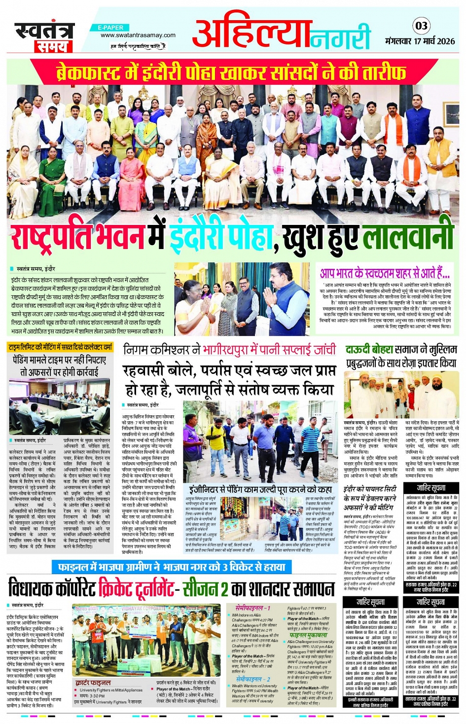 Indore Edition 17 March Page: 3 March 17, 2026 << First << 3 >> Last >> Page 1Page 2Page 3Page 4Page 5Page 6Page 7Page 8 × Indore Edition 17 March Page 1Page 2Page 3Page 4Page 5Page 6Page 7Page 8 << First << 3 >> Last >> Page 1Page 2Page 3Page 4Page 5Page 6Page 7Page 8