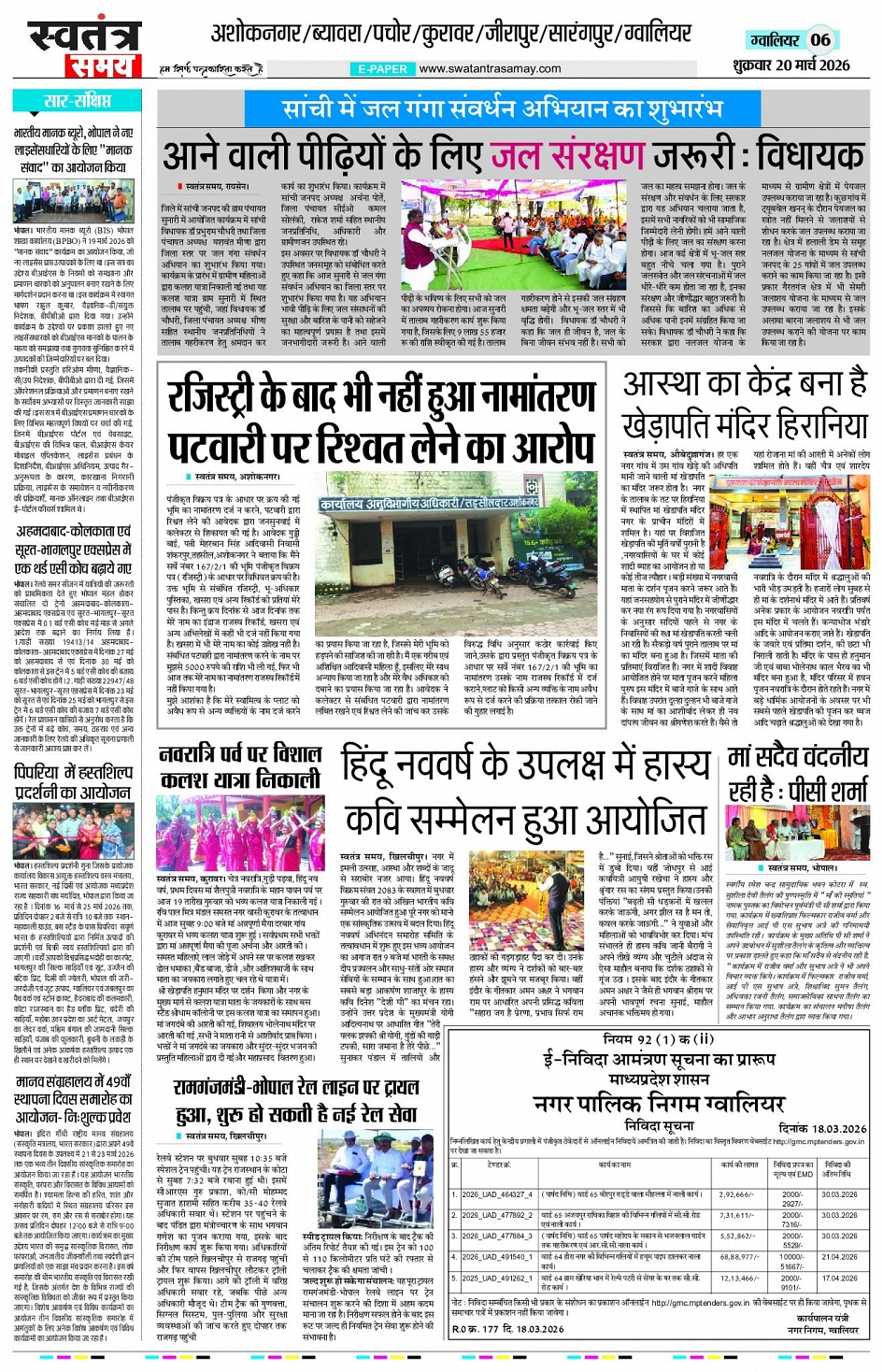 Gwalior Edition 20 MAR Page: 6 March 20, 2026 << First << 6 >> Last >> Page 1Page 2Page 3Page 4Page 5Page 6Page 7Page 8 × Gwalior Edition 20 MAR Page 1Page 2Page 3Page 4Page 5Page 6Page 7Page 8 << First << 6 >> Last >> Page 1Page 2Page 3Page 4Page 5Page 6Page 7Page 8