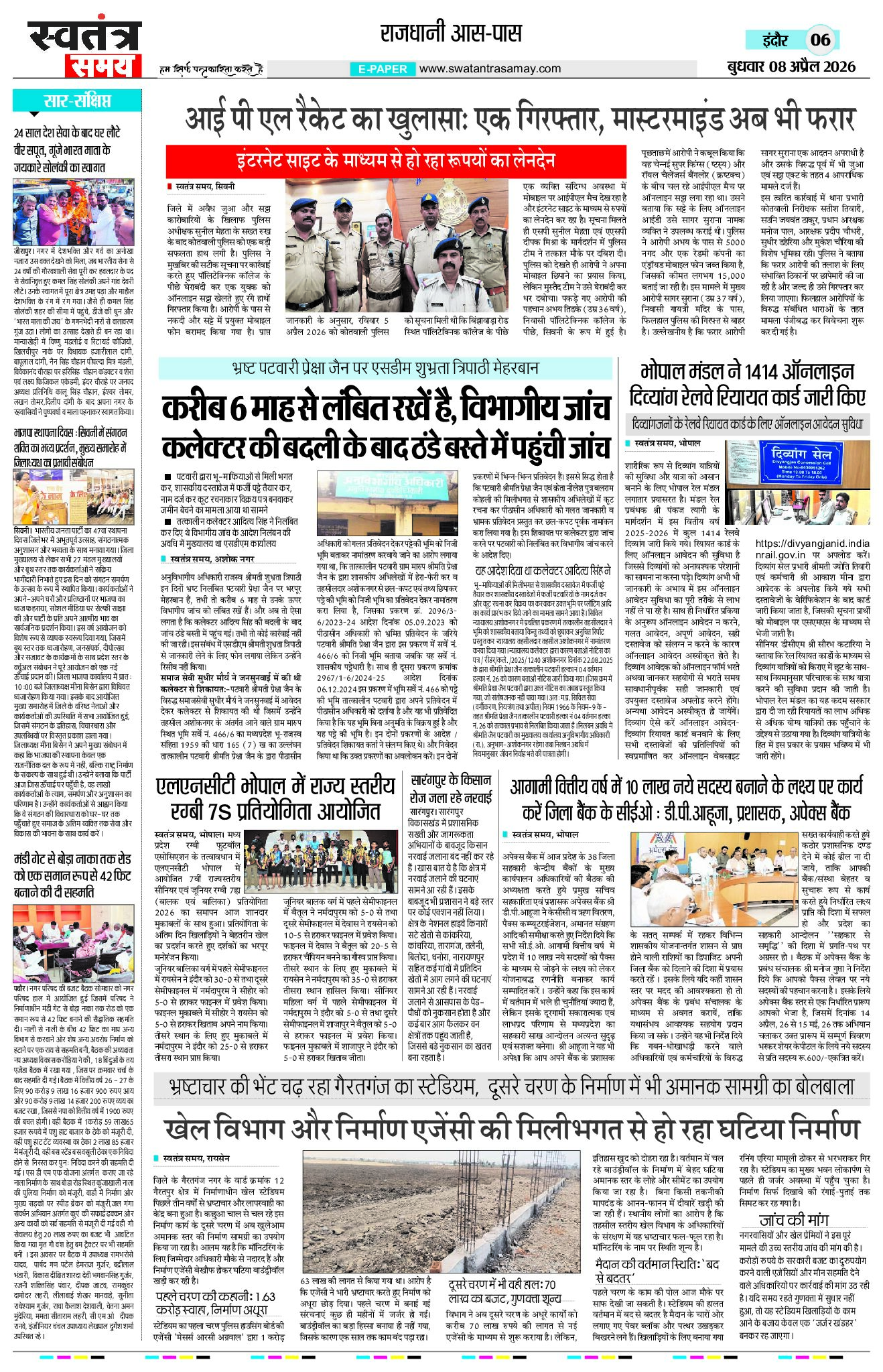 Indore Edition 08 April Page: 6 April 08, 2026 << First << 6 >> Last >> Page 1Page 2Page 3Page 4Page 5Page 6Page 7Page 8 × Indore Edition 08 April Page 1Page 2Page 3Page 4Page 5Page 6Page 7Page 8 << First << 6 >> Last >> Page 1Page 2Page 3Page 4Page 5Page 6Page 7Page 8