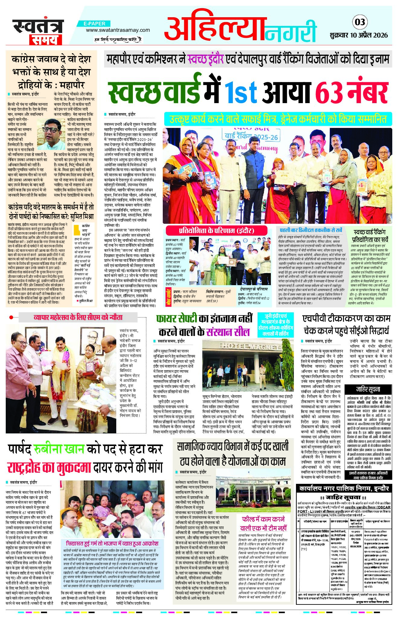 Indore Edition 10 April Page: 3 April 10, 2026 << First << 3 >> Last >> Page 1Page 2Page 3Page 4Page 5Page 6Page 7Page 8 × Indore Edition 10 April Page 1Page 2Page 3Page 4Page 5Page 6Page 7Page 8 << First << 3 >> Last >> Page 1Page 2Page 3Page 4Page 5Page 6Page 7Page 8