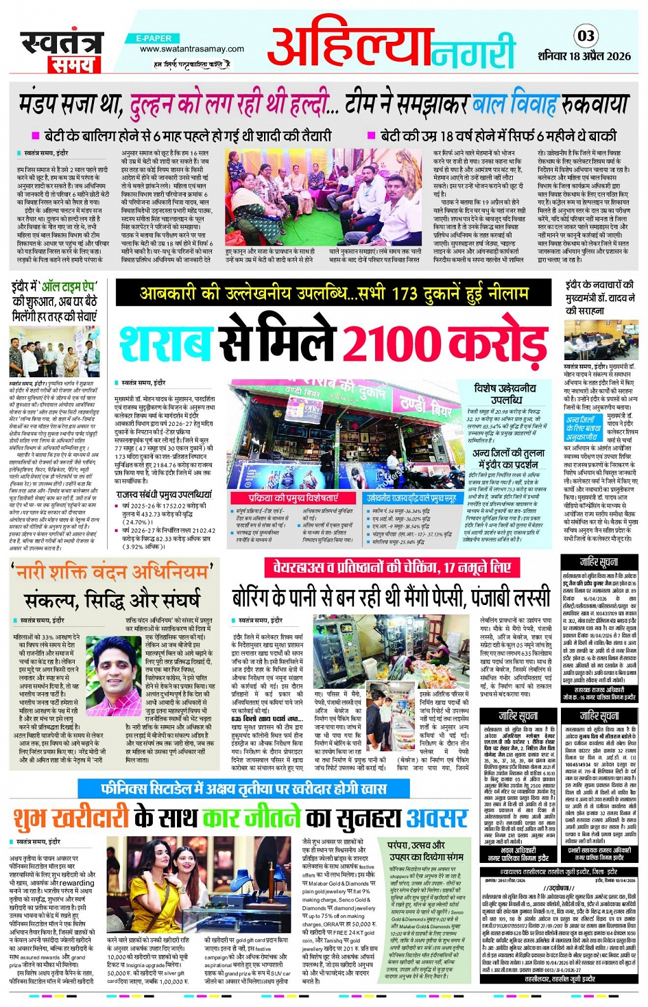 Indore Edition 18 April Page: 3 April 18, 2026 << First << 3 >> Last >> Page 1Page 2Page 3Page 4Page 5Page 6Page 7Page 8 × Indore Edition 18 April Page 1Page 2Page 3Page 4Page 5Page 6Page 7Page 8 << First << 3 >> Last >> Page 1Page 2Page 3Page 4Page 5Page 6Page 7Page 8
