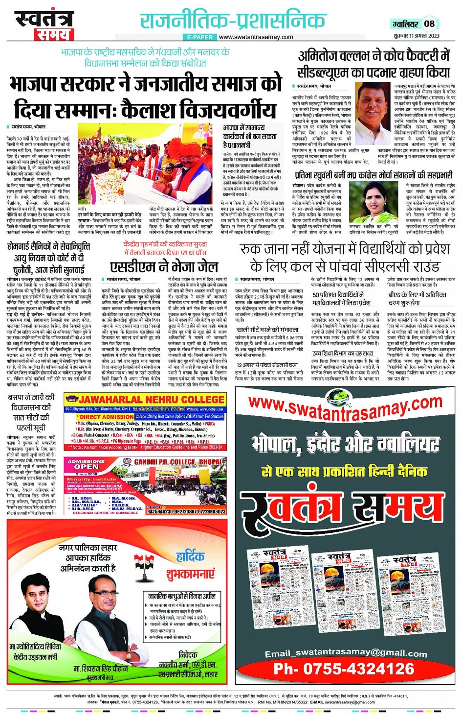 Gwalior Edition - 11th Aug Page: 8 August 11, 2023 << First << 8 >> Last >> Page 1Page 2Page 3Page 4Page 5Page 6Page 7Page 8 × Gwalior Edition - 11th Aug Page 1Page 2Page 3Page 4Page 5Page 6Page 7Page 8 << First << 8 >> Last >> Page 1Page 2Page 3Page 4Page 5Page 6Page 7Page 8
