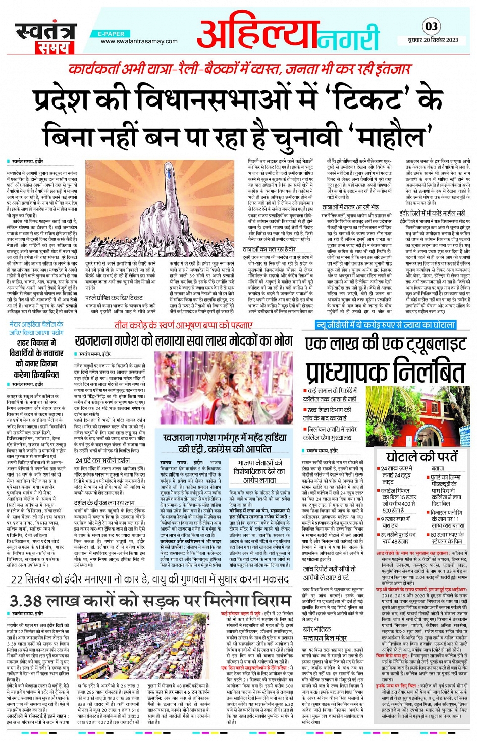 Indore Edition - 20th Sept Page: 3 September 20, 2023 << First << 3 >> Last >> Page 1Page 2Page 3Page 4Page 5Page 6Page 7Page 8 × Indore Edition - 20th Sept Page 1Page 2Page 3Page 4Page 5Page 6Page 7Page 8 << First << 3 >> Last >> Page 1Page 2Page 3Page 4Page 5Page 6Page 7Page 8