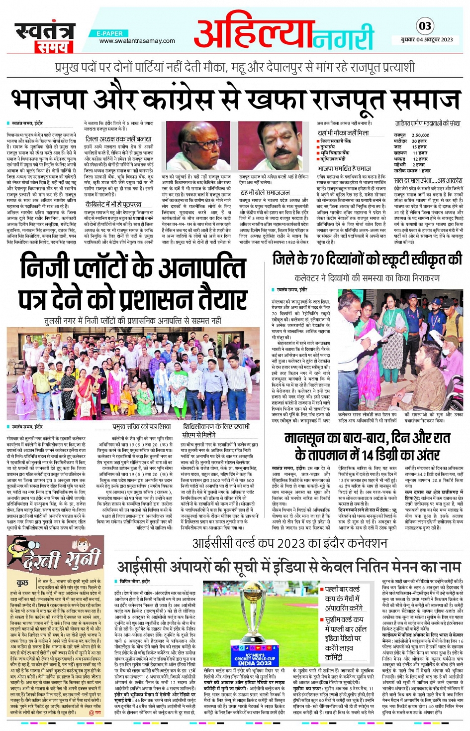 Indore Edition - 4th Oct Page: 3 October 04, 2023 << First << 3 >> Last >> Page 1Page 2Page 3Page 4Page 5Page 6Page 7Page 8 × Indore Edition - 4th Oct Page 1Page 2Page 3Page 4Page 5Page 6Page 7Page 8 << First << 3 >> Last >> Page 1Page 2Page 3Page 4Page 5Page 6Page 7Page 8